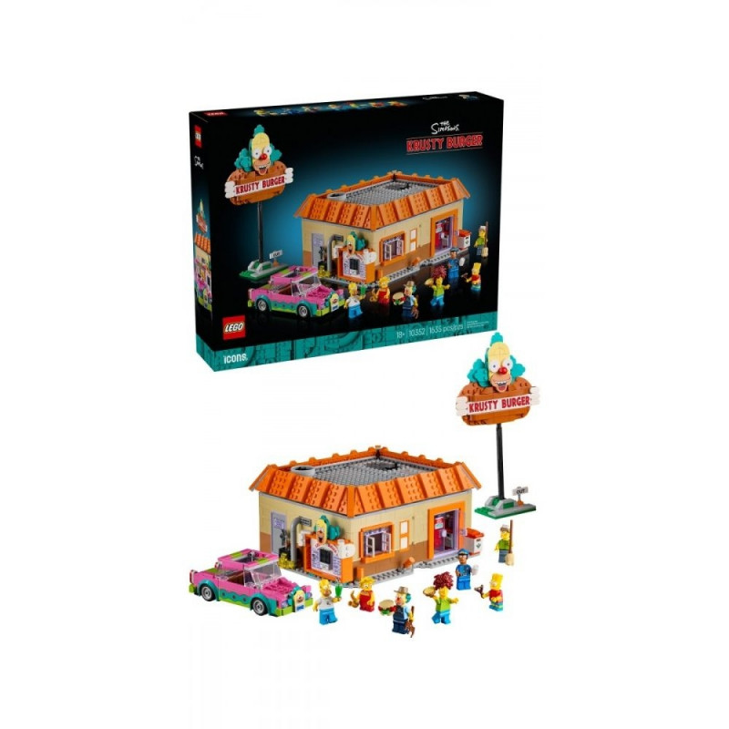 - Kolekcjonerski zestaw z serialu Simpsonowie - zbuduj słynny fast-food w Springfield dzięki temu zestawowi konstrukcyjnemu dla dorosłych LEGO Icons The Simpsons: Krusty Burger