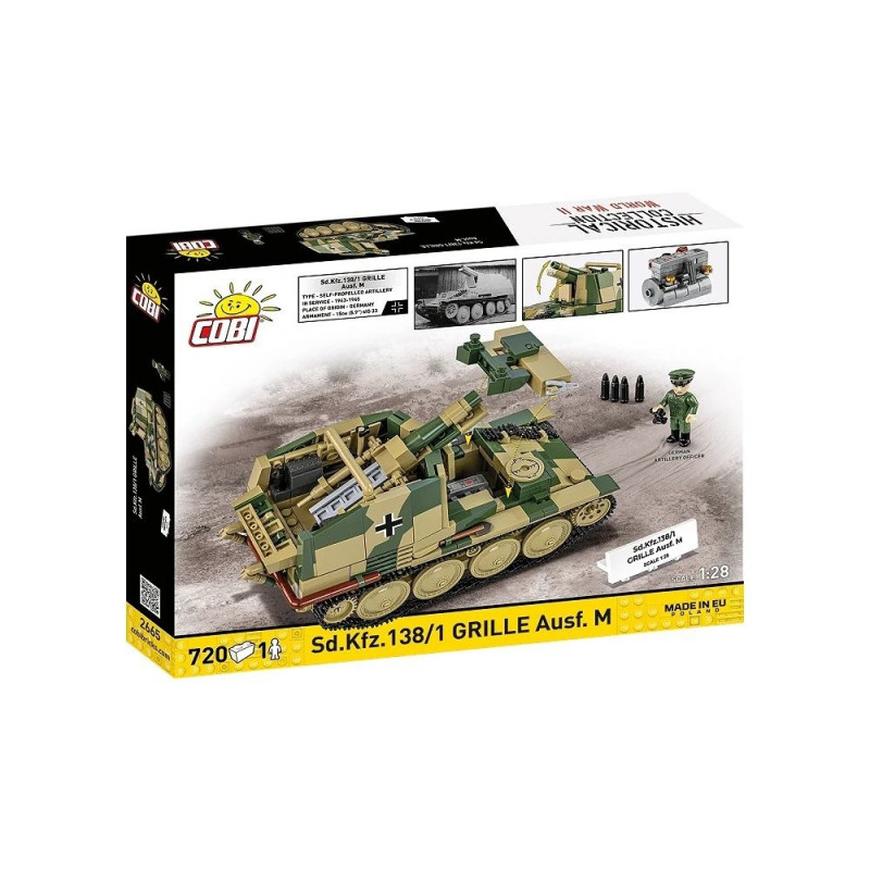 The COBI Grille Ausf. M model is a faithful reproduction of a German self-propelled gun in 1:28 scale, made from the highest quality bricks that connect precisely and durably. The set offers more than just fun. It offers the discovery of history through building!