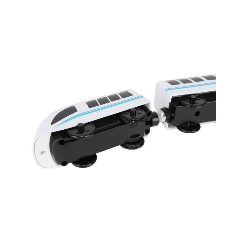 - 88 ELEMENTÓW ? zestaw składa się z 88 elementów precyzyjnie wykonanych i ładnie wykończonych, które można układać według własnego pomysłu. W komplecie znajduje się m.in tor, pociąg towarowy, pociąg osobowy, samochód, zestaw drzewek i znaków, 3 ludziki oraz pies policyjny, port przeładunkowy z dźwigiem, a także plansza z drogą samochodową. Elementy kolejki oraz pociągu łączą się na magnesy ? nie ma zbędnych haczyków, które mogłyby się odłamać i sprawiać ciągły problem dziecku z rozłączaniem zestawu. Magnesy są mocne ? nie puszczają nawet podczas podniesienia całego zestawu do góry.
