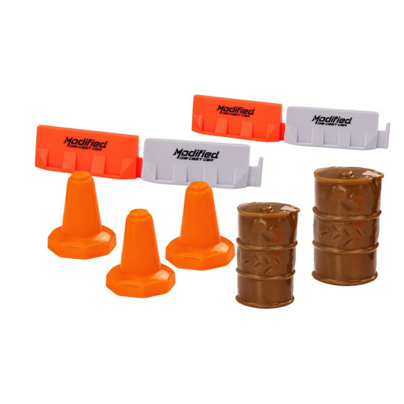 Model zawiera osiem pachołków drogowych, które mogą być używane do tworzenia scenariuszy na placu budowy lub w innych sytuacjach. W zestawie są również cztery blokady drogowe w kolorach pomarańczowym i białym, co zwiększa możliwości zabawy i nauki zasad bezpieczeństwa drogowego.Ciężarówka posiada napęd, który pozwala na samodzielne poruszanie się modelu.