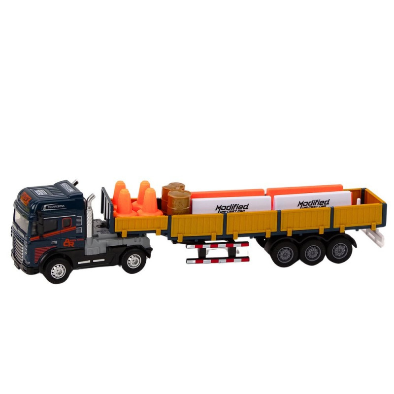 Ciężarówka z naczepą to model w skali 1:24, który jest wiernym odwzorowaniem rzeczywistego pojazdu. Posiada liczne funkcje, które zwiększają realizm zabawy oraz edukacyjny walor tego modelu. Model odwzorowuje rzeczywisty pojazd w skali 1:24, co pozwala na dokładne zobrazowanie detali i proporcji.Naczepa ma boczne drzwi, które można otwierać, co ułatwia załadunek i rozładunek. Jest zaprojektowana tak, aby można ją było przenosić na różne przedmioty, co zwiększa jej uniwersalność i funkcjonalność.Na przyczepie znajdują się dwie beczki, które mogą być używane jako ładunek do symulacji transportu materiałów.