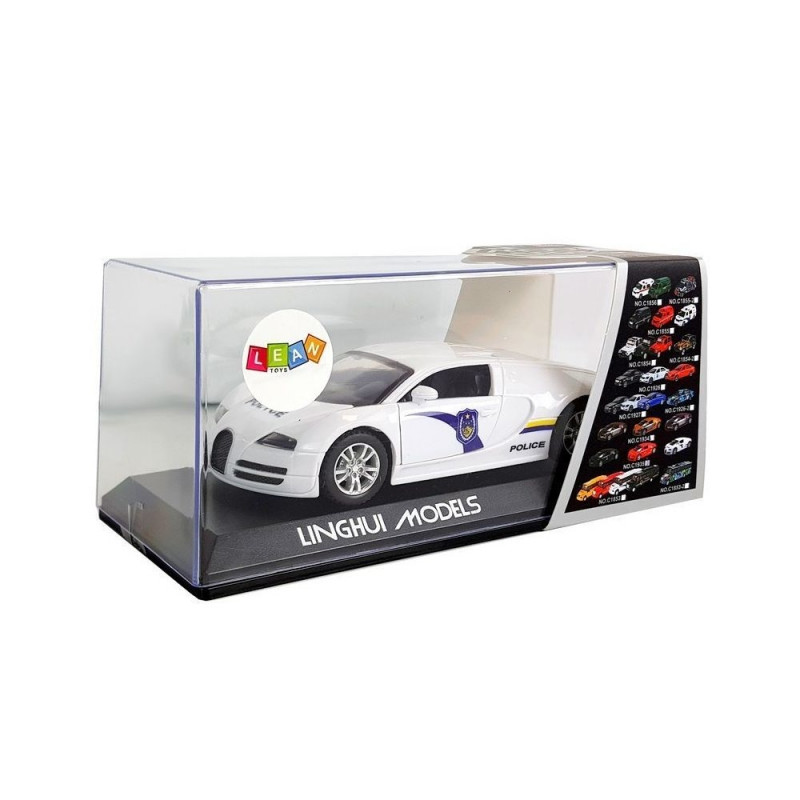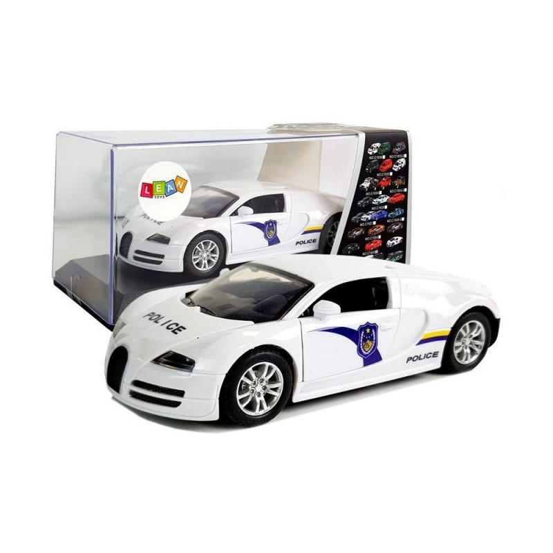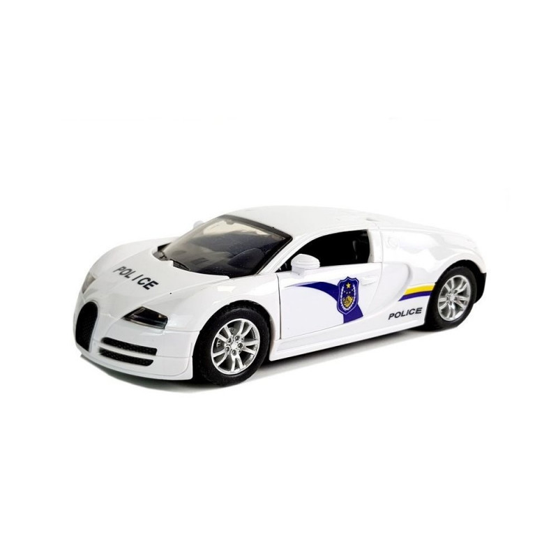 Pudełko w które jest zapakowane, będzie ładnie prezentować się na półce. Posiada napędem pull-back, wykonany został z plastiku na gumowych oponach.Na przodzie białego autka widnieją niebieskie wzory, napis POLICE, a po boku niebieskie pasy. Przyciemniane szyby dodadzą charakteru i pazura. Zabawkasprawi radość maluchowi, a może i dorosłemu. Rozbudzi w Twoim dziecku ciekawość otaczającego świata, pomoże rozwinąć cechy, takie jak precyzja czy spryt. Niech dołączy do jego kolekcji.