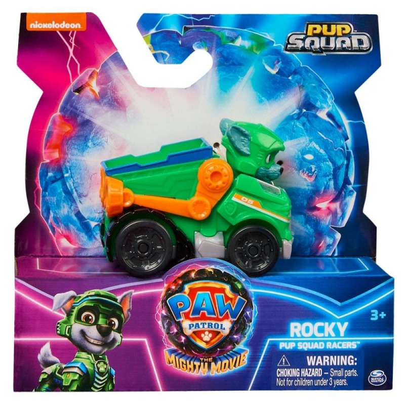 - Pojazd z filmu Psi Patrol: Wyścigówki Pup Squad są wyposażone w oryginalne elementy z Psiego Patrolu: Dzięki stylistyce i wzornictwu z filmu The Mighty Movie samochodziki wyglądają tak samo, jak pojazdy ratunkowe Mighty Pup z filmu!