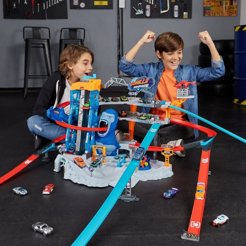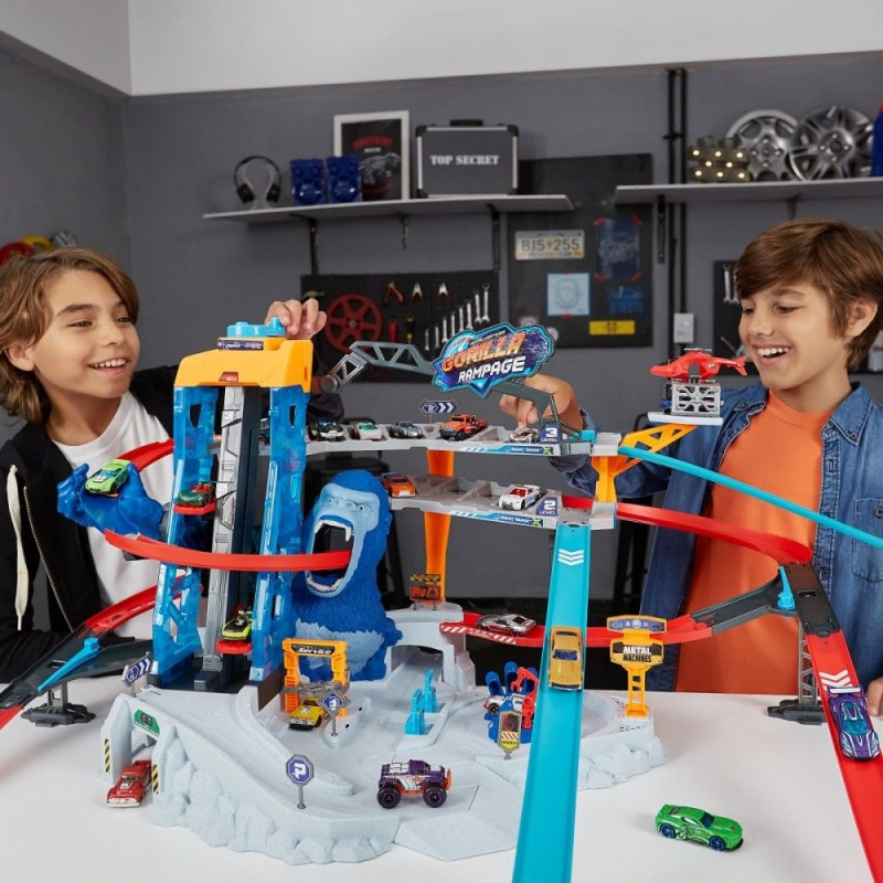 Tor samochodowy Metal Machines Gorilla Rampage jest dodatkowo wyposaĹźony w 2 stacje napraw samochodowych oraz platformÄ dla helikoptera ratowniczego, ktĂłry moĹźe transportowaÄ wasze pojazdy. Nad tymi atrakcjami czyha jednak potÄĹźny goryl, ktĂłry w kaĹźdej chwili jest gotowy na atak! Czy uda ci siÄ przedrzeÄ przez jego wielkÄ paszczÄ i umknÄÄ bez szwanku?