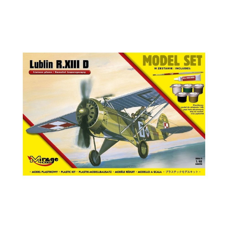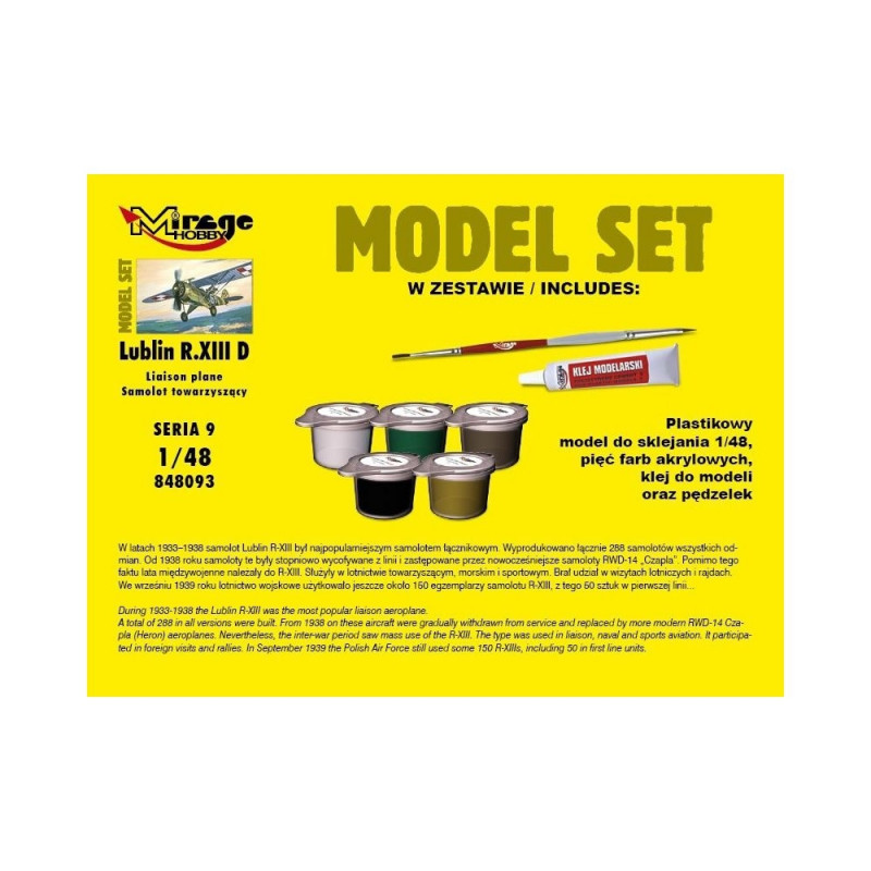 Zestaw zawiera plastiowy model samolotu do sklejania.