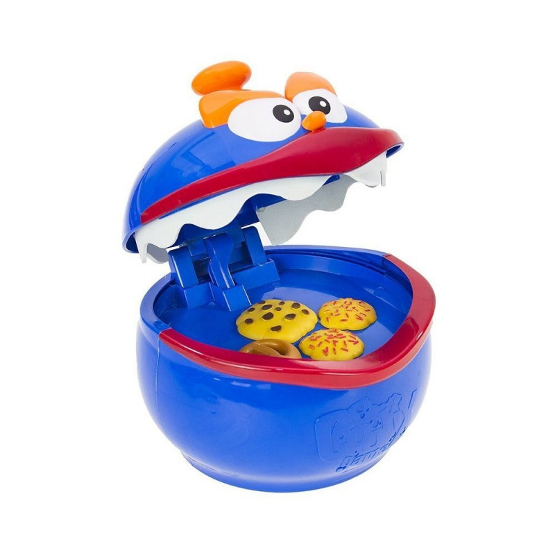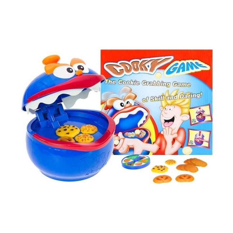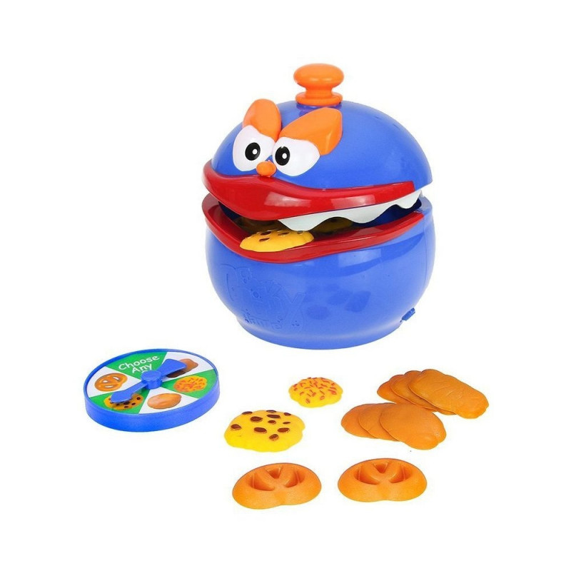 Ustawiamy Ciasteczkowego Potwora pomiędzy graczami. Na czubku jego głowy montujemy gałkę. Za pomocą uchwytu rozchylamy mu paszczę i przesuwamy przycisk blokady do góry - szczęka potwora zostanie unieruchomiona. W tym momencie możemy bezpiecznie wrzucić wszystkie ciasteczka. Zwalniamy blokadę i rozpoczynamy grę. Kręcimy strzałką, strzałka wskaże nem jakiego rodzaju ciasteczko mamy wyciągnąć z paszczy potwora. Podczas wykradania ciasteczka, dokładnie zaplanujcie każdy ruch, jedno niewłaściwe posunięcie i wasze paluszki zostaną lekko przytrzaśnięte.Grać możemy na zmiany. Gra się kończy w momencie gdy jeden z graczy zostanie przytrzaśnięty przez Ciasteczkowego Potwora. Rozgrywkę wygrywa ten kto zgromadził większą ilość ciasteczek. Zabawka posiada wykonane z miękkiej pianki zęby. Przy zatrzaśnięciu nie wyrządzi dziecku krzywdy. Zaproś kolegów i rodzinkę do fantastycznej zabawy. Zmierzcie się z Ciasteczkowym Potworem, zobaczymy kto jest bardziej sprytny.
