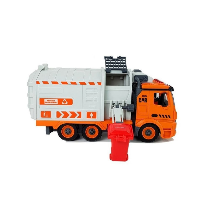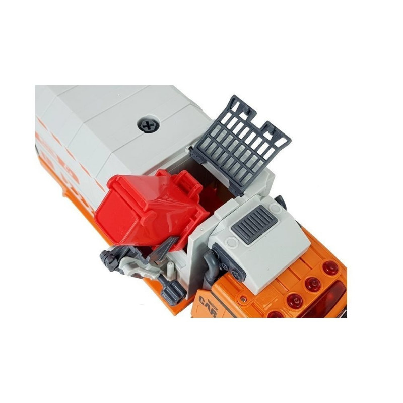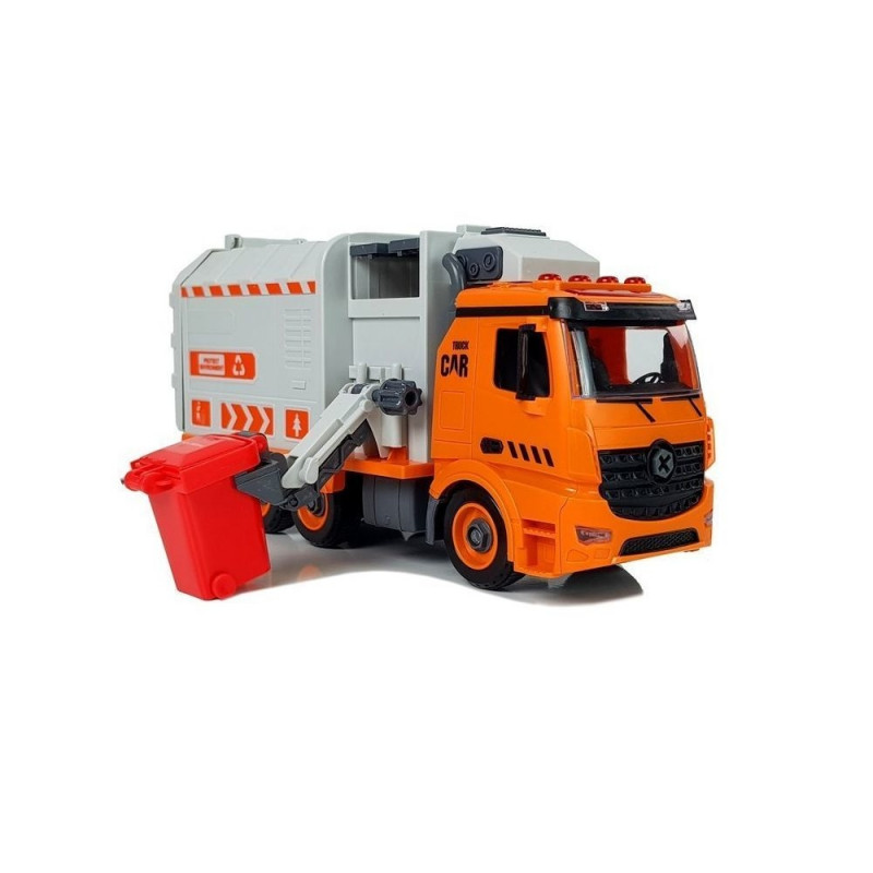 Pomarańczowo-szara śmieciarka zapewni wszystkim chłopcom długie godziny wypełnione rewelacyjną zabawą. Ta niebanalna zabawa będzie rewelacyjnym uzupełnieniem kolekcji pojazdów, a także zabawką, która szybko się nie znudzi. Pojazd utrzymany jest w klasycznej, pomarańczowej kolorystyce, z czarnymi i szarymi detalami. Śmieciarka osadzona jest na bieżnikowanych kołach, dzięki czemu dziecko będzie mogło używać jej na różnych rodzajach powierzchni. Autko może pokonywać prostą drogę, wystarczy tylko napędzić je, popychając.