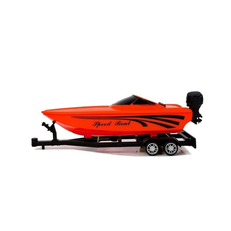 Motorówka w kolorze czerwonym z czarnym elementami, będzie widoczna z daleka. Możesz je zabrać wszędzie ze sobą, ciągnąc je na przyczepce. Wszędzie gdzie tylko wyobraźnia poniesie, lub można poruszać się autem bez łodzi.