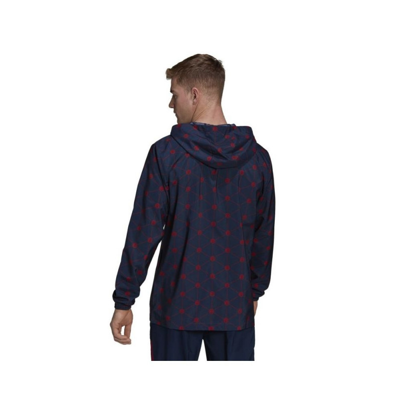 Properties: adidas windbreaker jacket. It has a built-in hood with a higher stand-up collar. Side pockets. Ribbed cuffs. Material: synthetic Color: navy Gender MenWarning: Last items in stock!