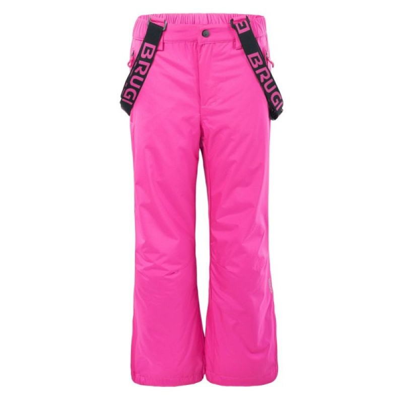 Brugi 3ahs trousers Properties: zippers at the bottom of the trousers snow cuffs elastic, adjustable straps 2 side pockets reflective elements waterproof: 1500 mm/H20 Material: polyester Color: pinkWarning: Last items in stock!