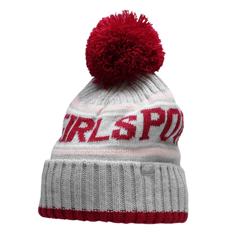 Czapka dla dziewczynki 4F to niezbędny dodatek w chłodniejsze dni. Napisy girls power. Pompon. Z przodu niewielka naszywka z logo. Wywinięty dół czapki. Materiał pomaga utrzymać ciepło. Elastyczna konstrukcja dopasowuje się do obwodu głowy.