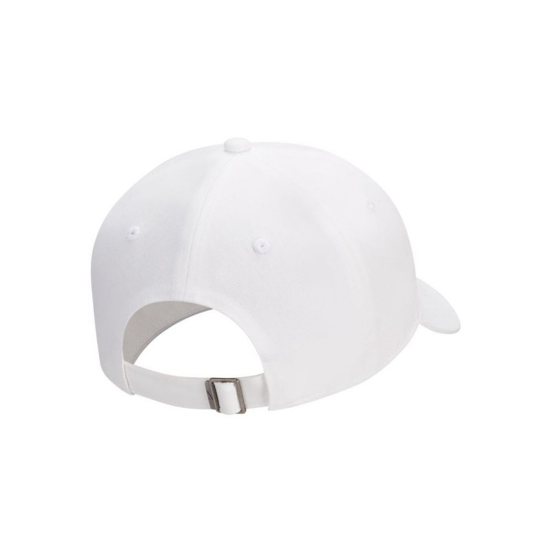 Properties : The Nike baseball cap is perfect for everyday use. Slightly curved, stiffened visor. Cotton knit fabric. Rear, adjustable buckle closure. Hemmed ventilation holes. Unisex model. Material: 100% cotton Color : whiteWarning: Last items in stock!