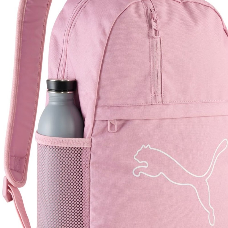 Solidny plecak Puma jest funkcjonalnym towarzyszem podczas szkolnej codzienności, wycieczek za miasto i wypadu na siłownię. Model z logo brandu. Posiada komorę główną otwieraną przy pomocy dwukierunkowego zamka błyskawicznego. Dodatkowa przegroda na notebooka. Boczne, siateczkowe kieszonki z elastycznym wykończeniem. Dwie, przednie kieszenie na zamek. Wzmocniony tył i miękko wyściełane, regulowane szelki. Pleciony uchwyt do noszenia w dłoni lub zawieszenia plecaka w szatni czy też na haczyku szkolnej ławki. Odblaskowy detal na szelce.