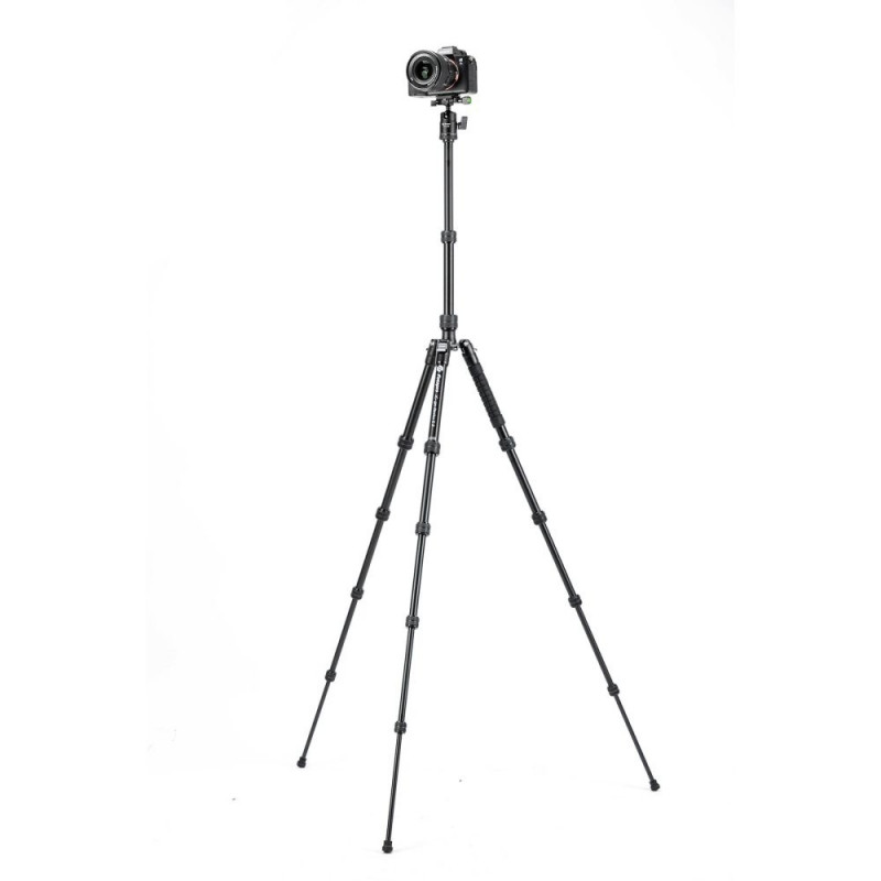 The Fotopro X Go Carbon E 2 Tripod with FPH 42QP ball head has legs with 5 sections that are locked with a twist lock system. With the centre column extended, the tripod has a maximum working height of 146 cm. Reversing the centre column allows a minimum working height of 33.7cm.