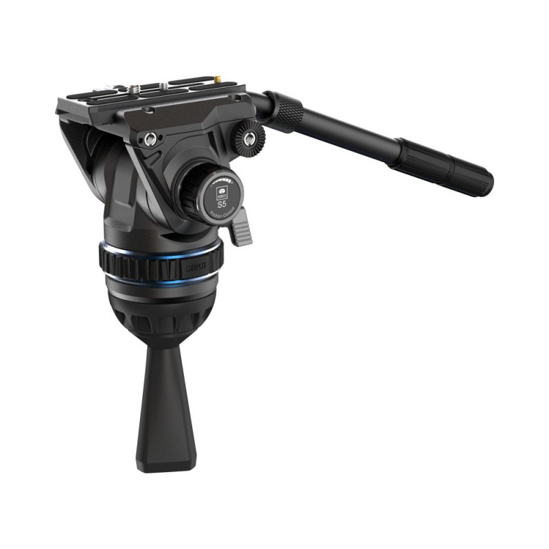 Sirui Video Head Fluid S5Solid build videohead in alluminium alloy construction makes it strong and durable. &nbspThe S5 fluid head with stepless counterbalance makes it possible to stop the camera at any position you like. &nbspStepless horizontal damping adjustment and&nbspfriction adjustment for tilting (-70 - +90°) ensures optimal control and fluid motion for any shooting angle.This head comes with flat head mount, but also an 75mm bowl adapter which makes it easy to adjust shooting angles without altering the tripod´s leg height, which is extremely convenient for heavy equipment shooting conditions.Comes with an Manfrotto quick release plate (with both 1/4" and 3/8" screws) with side loading design, which makes it fast and simple to mount your equipment on the head.&nbspIt also works with DJI RS series QR plate.It comes with an angle adjustable and extendable handle, and can be mounted on both left and right side to ensure flexible shooting.This head also features a built-in allen key and a bubble level.Compatibility:Tripods with flat mountTripods with 75mm bowlManfrotto QR plateDJI RS series QR platePackage includes:Sirui S5 Video head75mm Bowl mount adapterManfrotto QR plateExtendable handle