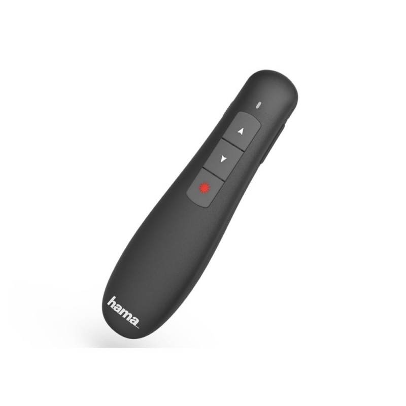 Deliver your presentations professionally with Hama's compact and wireless laser pointer. The remote control with a range of up to 12 m allows you to freely control the presentation without having to directly use the computer.