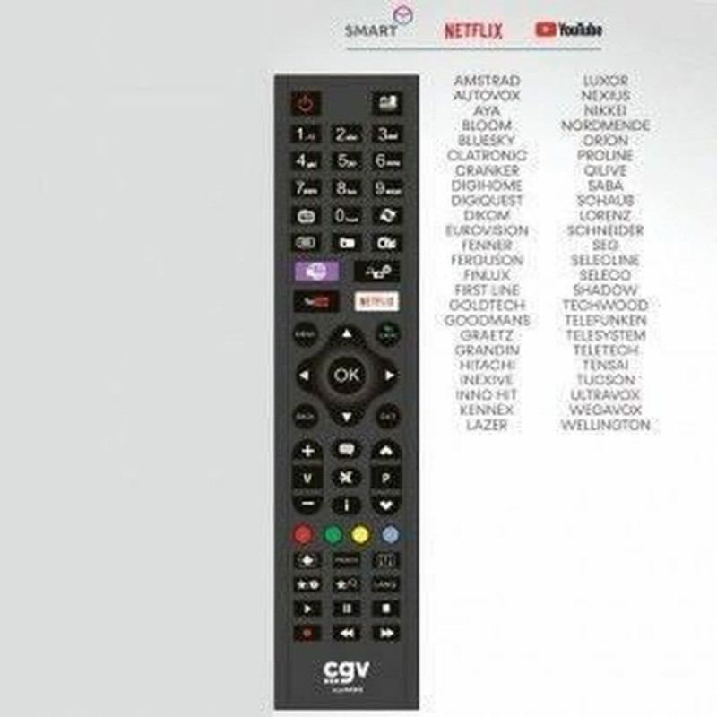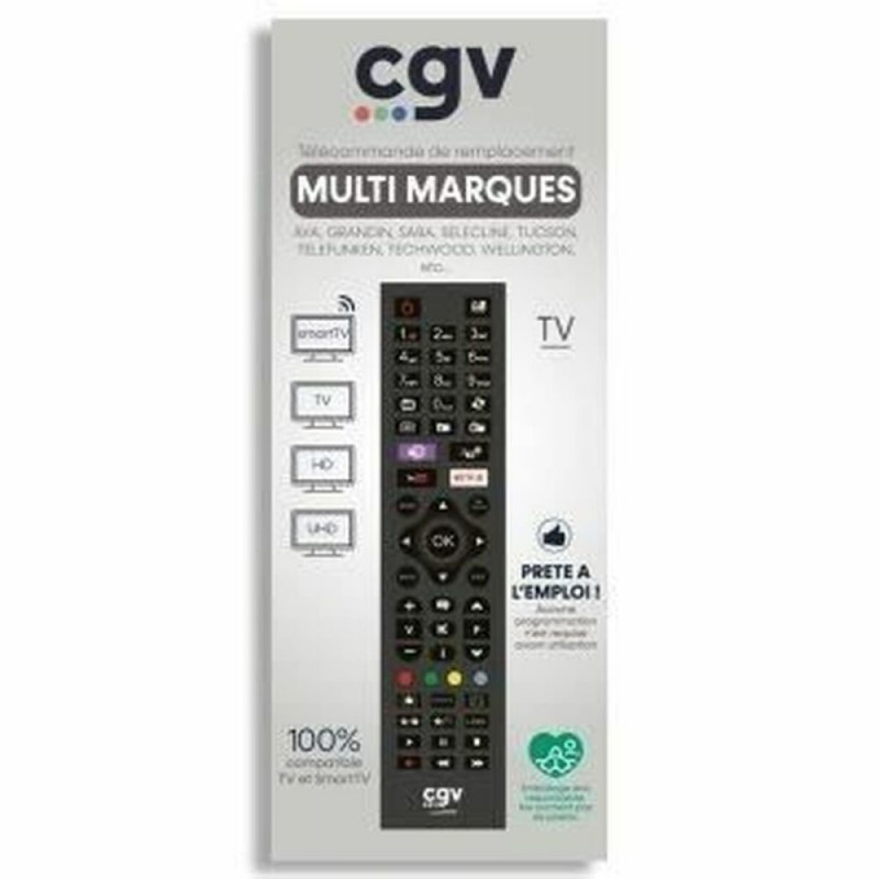 The CGV Universal Remote Control is a device designed to provide remote control compatibility with multiple brands and devices, making it easy to manage different electronic equipment from a single remote. It features a compact and ergonomic design in an elegant black color, with a lightweight of 115 grams that ensures comfort during extended use. This remote requires no prior programming, simplifying setup and allowing immediate use, adapting to a wide range of devices without complex configuration. Its construction focuses on the basic functionality of standard remote controls, offering a simple and practical user experience. Ideal for those seeking a versatile, hassle-free solution to control TVs or other compatible devices from various brands, this CGV product stands out for its multi-brand capability and ease of use. In short, a robust and accessible universal remote that meets basic remote control needs efficiently and simply.