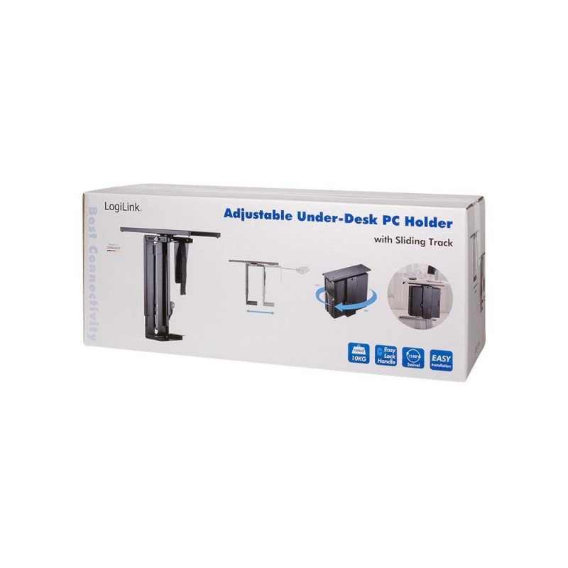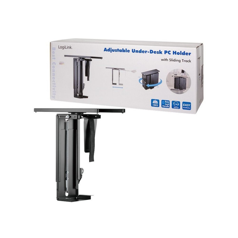 | Other features | Fits CPUs with up to 10 kg Sturdy and simple design 360° rotatable With easy lock handle Adjustable size Height: 300-510 mm, width: 88-203 mm Sliding mechanism for greater accessibility (sliding range: 325 mm) Easy mounting under the table |