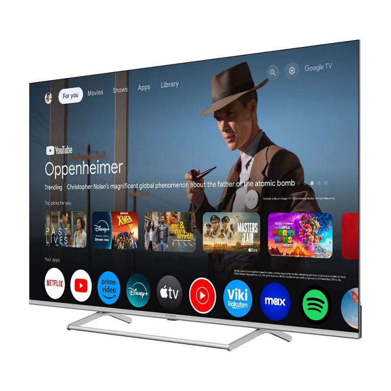 "Strong SRT65UG8773C. Bildschirmdiagonale: 165,1 cm (65""), Display-Auflösung: 3840 x 2160 Pixel, HD-Typ: 4K Ultra HD, Bildschirmtechnologie: QLED, Bildschirmform: Flach. Smart-TV. Motion Interpolation Technologie: IQR (Image Quality Ratio) 1400, Helligkeit: 400 cd/m², Reaktionszeit: 6,5 ms, Kontrastverhältnis: 6000:1, Natives Seitenverhältnis: 16:9. Digitales Signalformatsystem: DVB-T2, DVB-C, DVB-S2. WLAN, Ethernet/LAN. Produktfarbe: Metallisch, Silber"