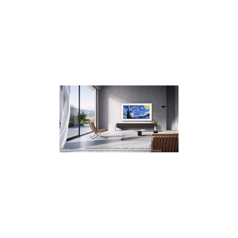 New TCL NXTVISION TV PRO Series has a Matte Screen, QLED PRO, 4K HDR PRO, 144Hz Motion Clarity Pro: this allow beautiful 4K HDR picture quality.<br><br>In order to match such a picture quality, TCL NXTVISION TV PRO Series delivers an unforgettable sound experience for your favorite entertainment. It includes a premium quality sound solution: 3.1.2 wireless Dolby Audio soundbar & subwoofer with 230W maximum sound power. <br><br>Bang & Olufsen creates statement audio pieces that are as beautiful as the sound they produce. Now, you can experience this exceptional sound quality in your TCL products, through Audio by Bang & Olufsen.<br><br>TV audio, tuned by the same tonmeisters who perfect some of the world’s most iconic speakers. A century of Bang & Olufsen’s expertise goes in, so only the purest sound comes out. The magic isn’t just in the tuning. Get closer to the music and the moment with seamless digital interfaces that let you navigate, customize and share your sound.<br><br>Audio by Bang & Olufsen is a promise. That every note of the sound experience has been tuned and tested until it’s worthy of the Bang & Olufsen name.<br><br>On top, with Game Master Pro 3.0, HDMI 2.1, ALLM, 144Hz VRR, 240Hz FHD Game Accelerator, FreeSync Premium, an improved TCL Game bar and latest HDR formats supported (including HDR10+, Dolby Vision and Dolby Vision IQ) this TCL TV is the best companion to enjoy any HDR movies, sports and games.<br> <br>TCL NXTVISION TV PRO Series also features the most advanced Smart TV system ever: Google TV with Google Assistant built-in. <br>Easily access to the contents you love thanks to Voice Remote Control.<br><br>TCL NXTVISION TV PRO Series allows to create your own atmosphere and blends seamlessly with your home decor by functioning as both a television and a piece of art. It features a private ART gallery for free with ‘’Ai’’ Art **, an ambient relaxation mode, customizable Magnetic Decorative Frames*, and offers freedom of placement at home (3 different ways to configure position***).<br><br>ON or OFF, new TCL NXTVISION TV PRO Series design, picture and sound quality will blend into your home decor.<br><br>* TCL NXTVISION TV PRO Series come in white version, together with extra Dawn Birch color frame<br>**"Ai" Art images are pre-generated by AI technology, not created in real-time.<br>*** The product also comes standard with a wall mount included in a package. Moveable Floor Stand and Adjustable Cabinet Stand are sold separately and might not be available in all countries. Subject to availability. TCL 65A300 Pro. Display diagonal: 165.1 cm (65"), Display resolution: 3848 x 2160 pixels, HD type: 4K Ultra HD, Display technology: QLED, Screen shape: Flat, LED backlighting type: Edge-LED. Smart TV. Motion interpolation technology: PPI (Picture Performance Index) 3600, Display brightness: 450 cd/m², Response time: 5.7 ms, Native aspect ratio: 16:9. Digital signal format system: DVB-C, DVB-S2, DVB-T2. Wi-Fi, Ethernet LAN. Product colour: White