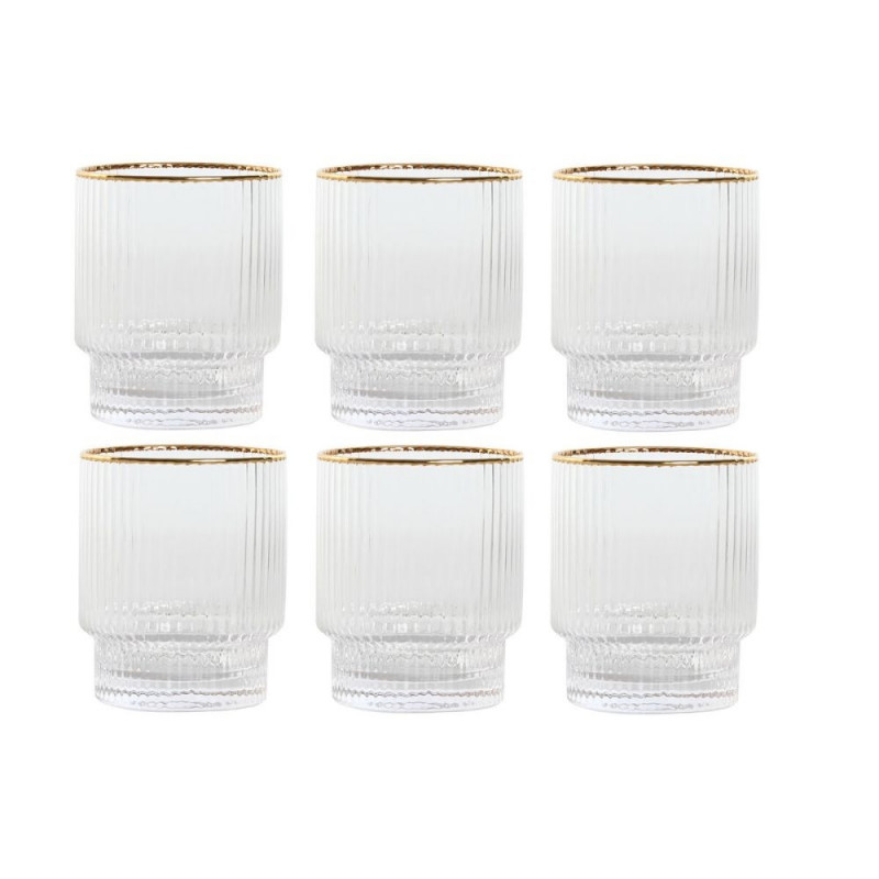 Set of glasses Home ESPRIT Transparent Golden Crystal 320 ml (6 Units)