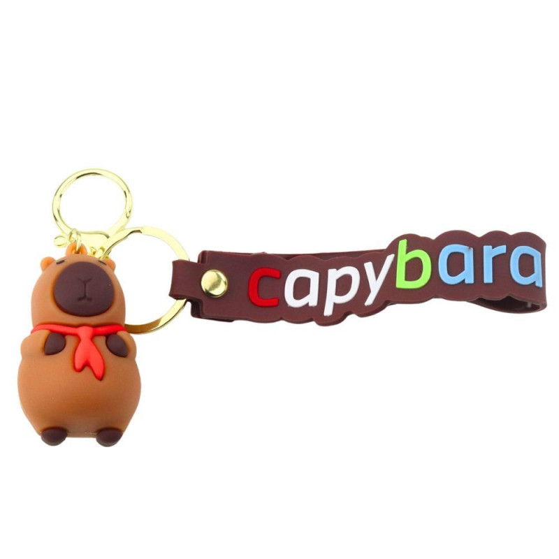 Brelok wyposażony jest w solidny karabińczyk i klasyczne kółko, dzięki czemu można go wygodnie przypiąć do kluczy, torby, plecaka, piórnika czy kosmetyczki. Całość uzupełnia silikonowa zawieszka z napisem ?capybara? w kolorowych literach, która nadaje produktowi nowoczesnego i młodzieżowego charakteru.