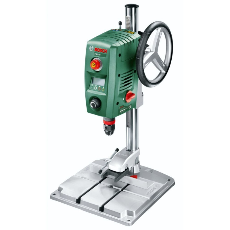 The PBD 40 table drill offers an optimal combination of precision and comfort. Drilling speed and depth can be read on the digital display and adjusted continuously on the button below. It offers relaxed working thanks to a quick-release clamp that can be used to fix even round workpieces, while the keyless precision drill chuck automatically re-tensiones the drill. Your 2-speed gearbox with a lot of power in the first and high speed in the second gear ensures perfect adaptation to the respective material. It is ideal for use in a wide range of projects with wood, metal and aluminum. It offers LED, laser, Bosch Electronic, a large worktop and a parallel stop.