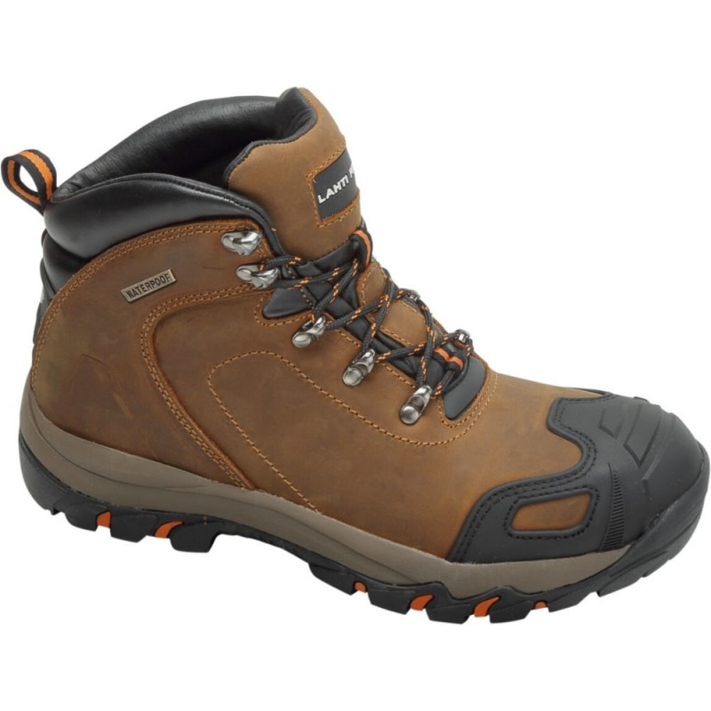 - MATERIAŁ: Wierzch: wysokiej jakości licowa skóra trekkingowa ?crazy horse?, zewnętrzna konstrukcja obuwia w części przedniej i tylnej wzmocniona tworzywem TPR, wysokiej jakości metalowe szlufki. Podszewka: skóra. Wyściółka: wymienna, skóra. Podeszwa: gumowa o właściwościach antypoślizgowych (podłoże ceramiczne), głęboki bieżnik zwiększa przyczepność do podłoża