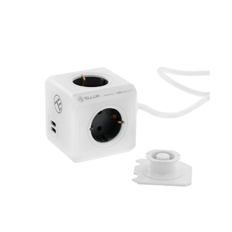 Tellur Power Cube Extended, Power strip 4 Outlets + 2xUSB ports, 1.5m cable white