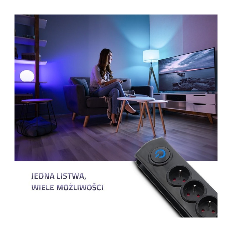 Meie pikendusjuhe sobitub suurepäraselt sinu seadmetega. Selle tagab stiilne must värv. Disain järgib uusimaid trende, ühendades elegantsi ja lihtsa kasutuse. Võida rohkem ruumi – keera juhe pikendusjuhtme ümber, aseta see põrandale või kinnita mööbli külge ning naudi liikumisvabadust.