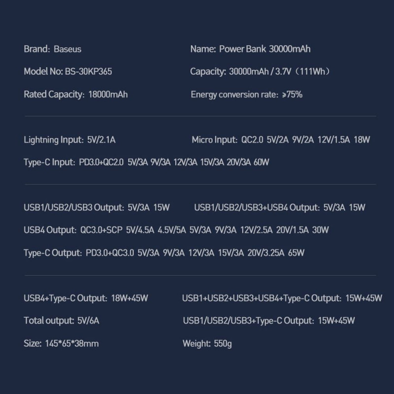 Baseus Amblight powerbank 65W 30000mAh Overseas Edition white (PPLG000102)