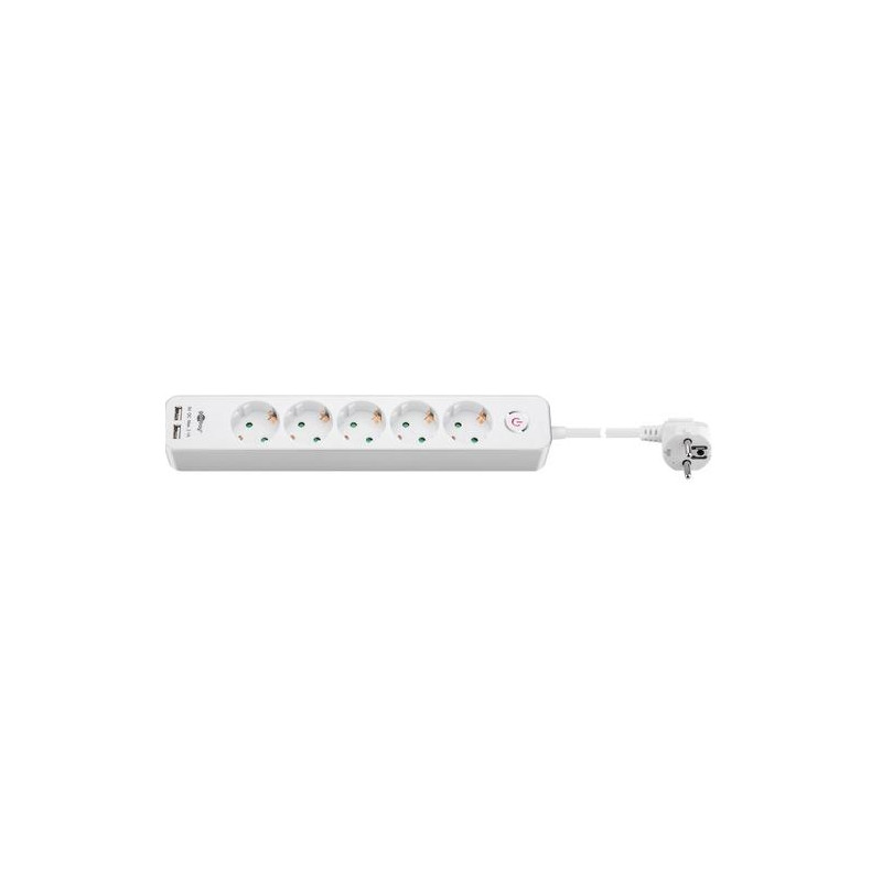 connect up to 2x USB and 5x electronic devices at once<br>Goobay 5-Way Power Strip with Switch and USB. Cable length: 1.5 m, Placement supported: Indoor, AC outlet types: Type F. AC outlets quantity: 5 AC outlet(s). AC input voltage: 250 V, AC input frequency: 50 Hz, Maximum input power: 3680 W. Width: 50 mm, Depth: 325 mm, Height: 40 mm. Number of products included: 1 pc(s), Package type: Hanging box