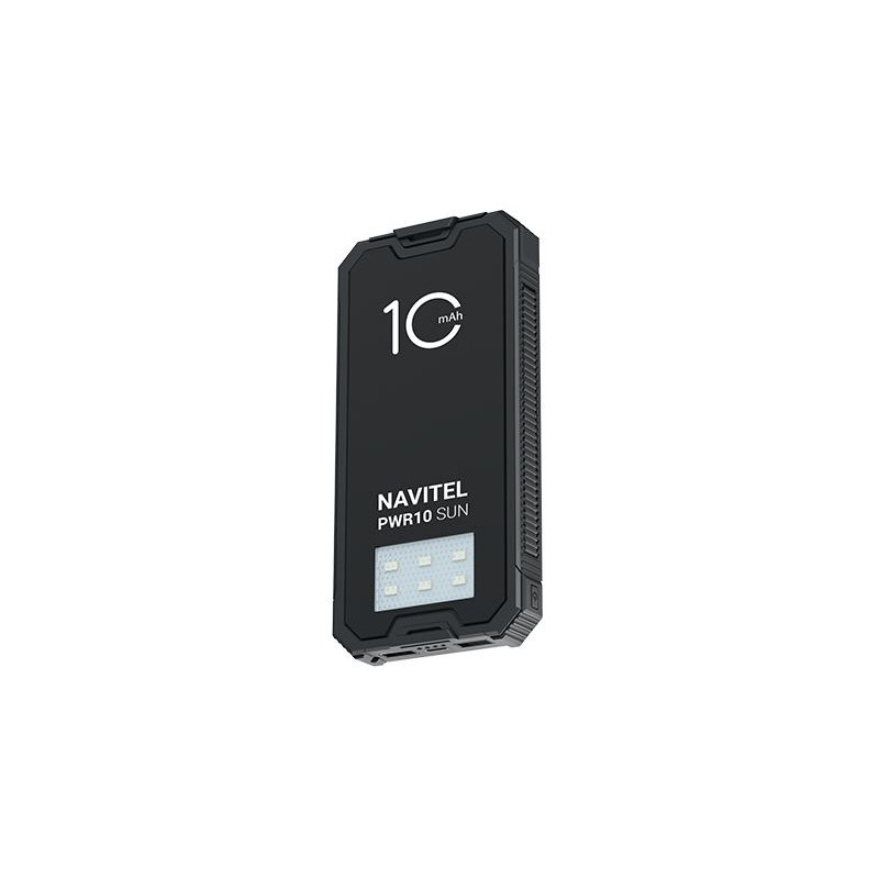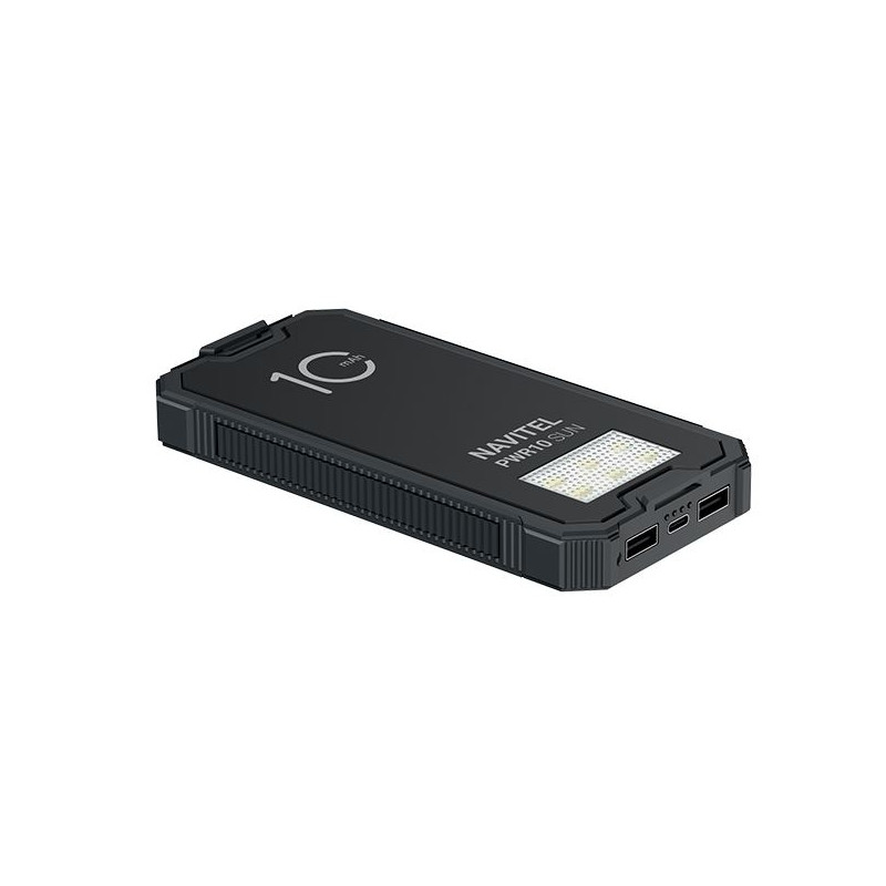 NAVITEL PWR10 SUN on kaasaskantav, 10000mAh mahutavusega tugevdatud korpusega ja kerge aku, mis on varustatud kompaktse päikesepaneeliga. 2 sisseehitatud USB-A väljundit ja 2-suunaline USB-C port võimaldavad laadida mitut seadet korraga. NAVITEL PWR10 SUN ühildub kõigi mobiiltelefonide ja muude elektroonikaseadmetega.