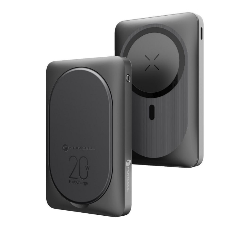 Forcell MagStand on powerbank inimestele, kes hindavad oma aega. See eristub mitte ainult oma 10 000 mAh mahutavuse ja populaarsete USB-C ja USB-A portidega, vaid eelkõige võimega juhtmevabalt laadida mõningaid seadmeid, mis toetavad MagSafe tehnoloogiat, näiteks iPhone. Kaasaegne, kerge disain koos alusega tagab mugavuse ning sisseehitatud turvasüsteem tagab kaitse kasutamise ajal. Täis energiat MagStand tagab, et teie seadmed on alati valmis tegutsema. Unustage tühjenenud telefon, tahvelarvuti või konsool! 10 000 mAh mahutavus võimaldab teil energiat täiendada mitu korda igas seadmes ning tänu LED-idele saate hõlpsalt kontrollida powerbanki enda aku olekut. Juhtmega või ilma Forcell MagStand koos USB-C ja USB-A portidega võimaldab juhtmega laadimist kuni kahe seadme korraga suhteliselt lühikese aja jooksul tänu Power Delivery 20 W ja Quick Charge 3.0 tehnoloogiale. Lisaks saate kasutada induktiivset energiatäiendust, mis toetab MagSafe tehnoloogiat, näiteks iPhone'i. Meie powerbanki kasutades reisikaaslaseks ei pea te muretsema oma lemmik-elektroonika pärast. Rahuldage oma vajadused Forcelli powerbank on funktsionaalsuse, täieliku mugavuse ja ohutuse kombinatsioon. Toode, millel on õhuke, kerge disain ja alus, omab sisseehitatud 5-etapilist kaitse süsteemi, mis minimeerib muu hulgas lühise, ülelaadimise, ülepinge või ülekuumenemise riski. Seade on kavandatud vastama lennufirmade nõuetele, mis võimaldab seda probleemideta lennukile kaasa võtta. Spetsifikatsioon: Mahutavus: 10 000 mAh/38,5 Wh Aku tüüp: kõrge energiatihedusega liitium-polümeer Laadimisaeg: - umbes 6 tundi (kasutades 5 V/2 A toiteallikat) - umbes 3 tundi (kasutades 9 V/2 A toiteallikat) Sisendpesa: - Lightning: 5V-2A/9V-2A - USB-C: 5V-3A/9V-2A Väljundpesa: - USB-C: 5V-3A/9V-2,2A/12V-1,67A - USB-A: 4,5V-5A/5V-4,5A/9V-2,0A/12V-1,5A - Induktiivne laadimine (MagSafe): 5W/7,5W/10W/15W Mõõtmed: 109 x 69 x 17,9 mm Kaal: 180 g Töötemperatuur: - Sisend: 0°C~45°C - Väljund: -10°C~60°C