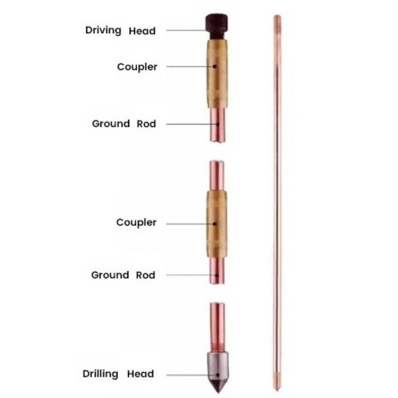 - Terava tipuga. Mõeldud maandustoru sügavale maasse löömiseks, keeratakse otse maandustoru külge.