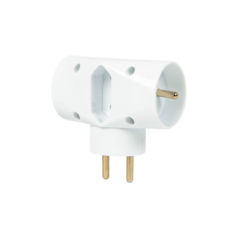 Väga funktsionaalne harupistik kahe maandusega pesaga ja ühe lameda pesaga. Äärmiselt kasulik olukordades, kus saadaval on vähe voolupistikuid.