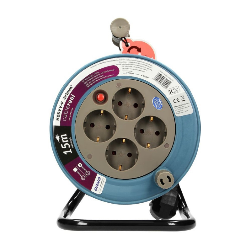 Przedłużacz bębnowy MINI, 4 gniazda 2P+Z, metalowy stojak, polwinit H05VV-F 3 (4 tk.)