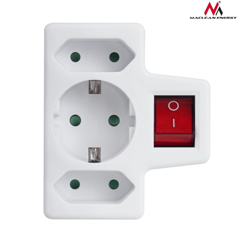 Maclean potrójne pistikupesa lülitiga, 1x16A, 2x2.5A, saksa versioon, MCE215
