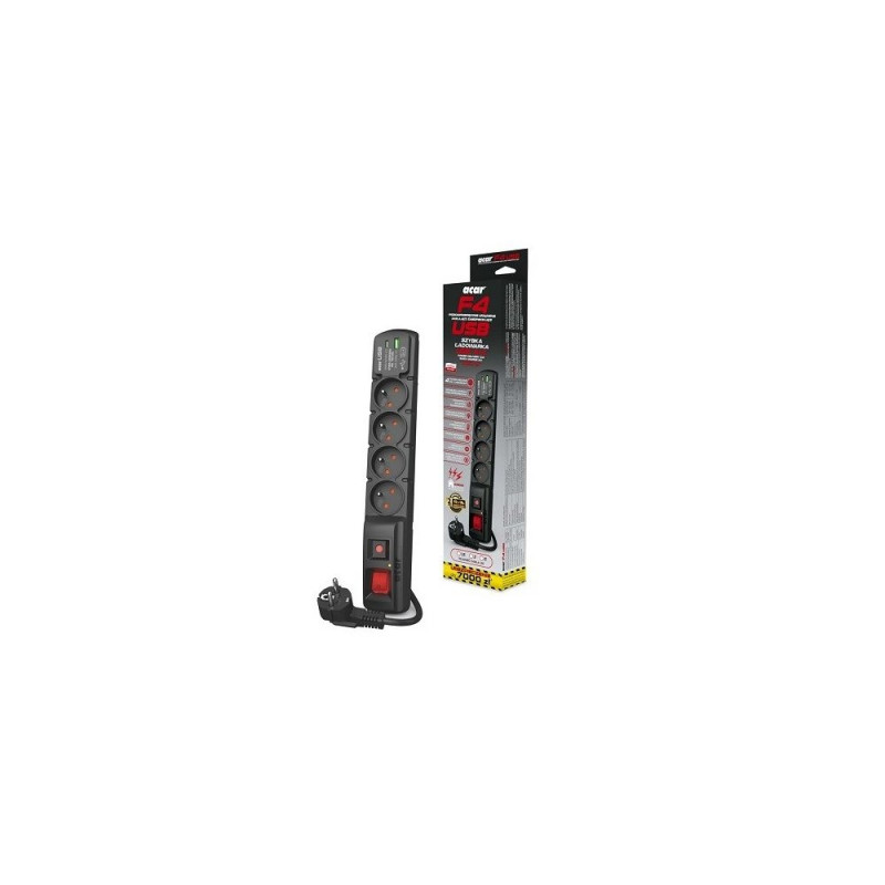 Acar F4 USB A+C ülepingekaitsekaabel (kiirlaadija) 5m ; must