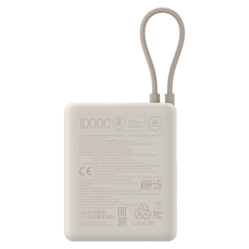 Xiaomi 33W Power Bank (Integrated Cable) | 10000 mAh | USB-C | Tan