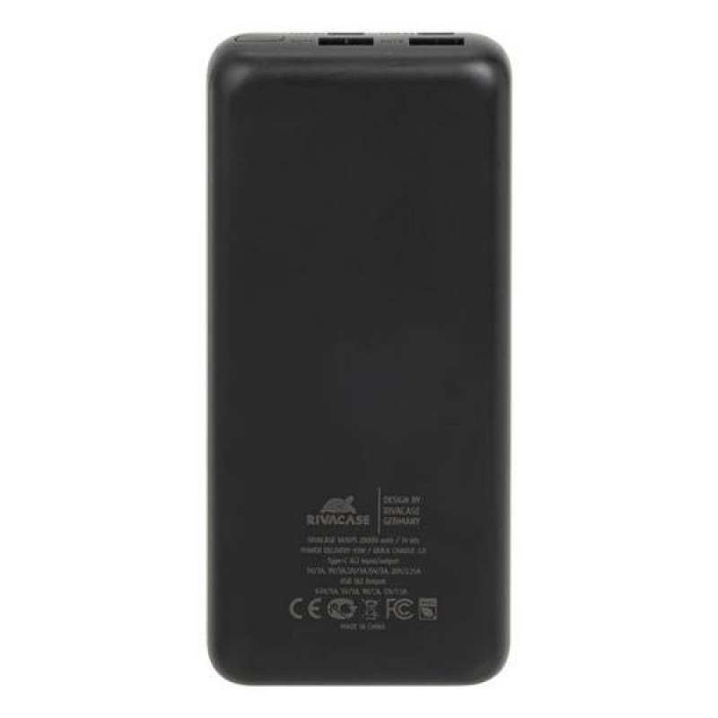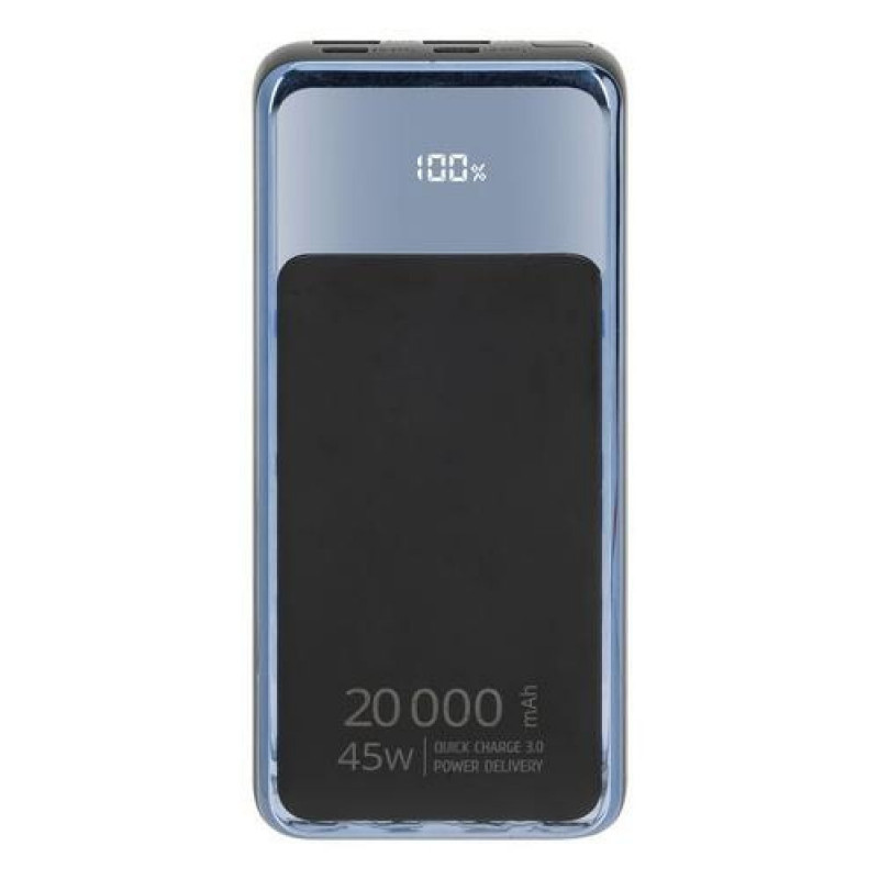 A power bank designed for laptop charging.<br><br>20000 mAh QC/PD 45W portable battery with LCD, for laptopsRivacase VA1075. Battery capacity: 20000 mAh, Battery technology: Lithium Polymer (LiPo). USB Type-A output ports: 2, USB Type-C ports quantity: 2. Product colour: Black, Blue
