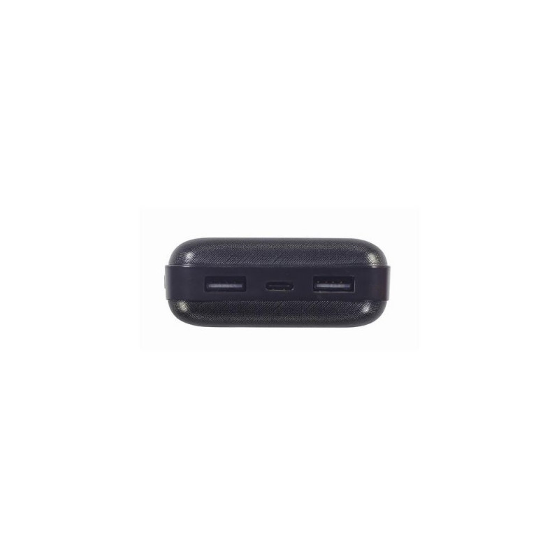 Powerful 20000 mAh power bank with 2 USB ports<br>Suitable for charging e.g. smartphones or tablets<br>Built-in protection against short-circuit, overcharging and over-discharging<br>LED battery status indicatorGembird PB20-02. Battery capacity: 20000 mAh, Battery technology: Lithium Polymer (LiPo), Battery voltage: 3.7 V. USB Type-A output ports: 2, USB Type-C ports quantity: 1. Total output power: 12 W, Output current: 2.4 A. Product colour: Black