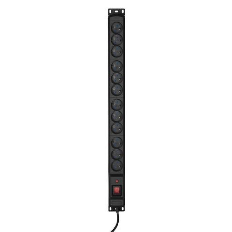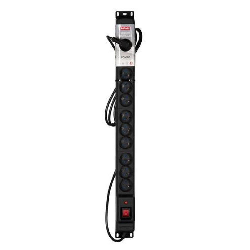 Activejet power strip with a 5 metre power cord. Essential protection against surges and mains voltage fluctuations. Features a two-stage protection system, 12 grounded sockets, automatic fuse, a safe, fire-resistant and nonconductive housing, operation indicator and a replaceable fuse. The power strip can also be attached to the floor or wall surface.<b>Power strips</b>Activejet power strips offer an obligatory level of protection against voltage surges and power fluctuations. They feature a grounded two-stage outlet protection system and an automatic fuse. Their insulating and fire-resistant housing can be either floor or wall mounted.Activejet COMBO 12 socket power strip 5m black. Cable length: 5 m, Placement supported: Indoor, AC outlet types: Type E. AC outlets quantity: 12 AC outlet(s). AC input voltage: 230 V, AC input frequency: 50 Hz, Maximum input power: 2500 W. Cable colour: Black. Number of products included: 1 pc(s), Package type: Card