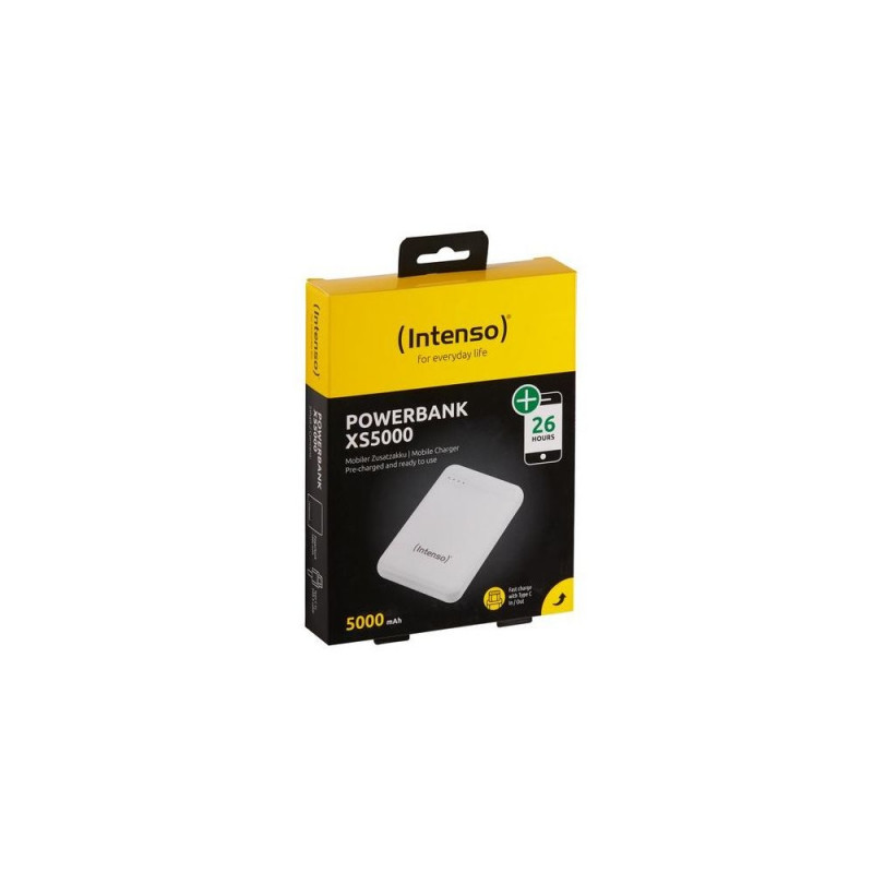 <b>Excellent compatibility</b><br>Equipped with a USB-C, USB-A and microUSB port, the Powerbanks have every requirement to recharge even the latest smartphones and tablets.<br><br><br><b>Handy design and stylish colours</b><br>Thanks to their compact form, the XS Powerbanks can be easily stowed in the bag even during charging. In addition to black and white, the XS5000 and XS10000 Powerbanks are also available in the popular colours petrol, blue and rosé.<br><br><br><b>Fast charging and ready for use</b><br>The Mini Powerbanks allow a fast charging with up to 2.1A Ampere. The included USB-A to USB-C cable can be used directly to charge your devices. Your ideal companion on the road!Intenso 7313522. Battery capacity: 5000 mAh, Battery technology: Lithium Polymer (LiPo). USB Type-A output ports: 1, USB Type-C ports quantity: 1. Output current: 2.1 A. Product colour: White