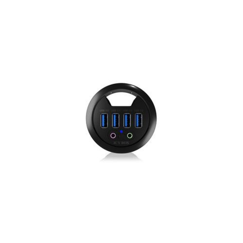 <b>Makes the computer more sociable</b><br>The IB-HUB1403A offers four USB 3.0 ports to connect a variety of devices. The audio In/Out complete the versatility and can connect with headphones or other audio devices.<br><br><b>Fast reading, fast loading</b><br>All USB ports support USB 3.0 bandwidth and thus transmission rates of up to 5 Gbit/s. On the other hand, the hub is connected via USB 3.0 and Audio In/Out to a PC or laptop.<br><br><b>Humble helper</b><br>Often advantages bring new disadvantages, not here while bringing 4 new USB 3.0 ports and audio ports the cable management hole is still usable even while the cover is used to protect the connectors.ICY BOX IB-HUB1403A. Product colour: Black, Housing material: Plastic, LED indicators: Power. Width: 69 mm, Depth: 69 mm, Height: 70 mm. Quantity per pack: 1 pc(s), Package width: 102 mm, Package depth: 200 mm. Country of origin: China, Master (outer) case width: 370 mm, Master (outer) case length: 535 mm. Output voltage: 5 V