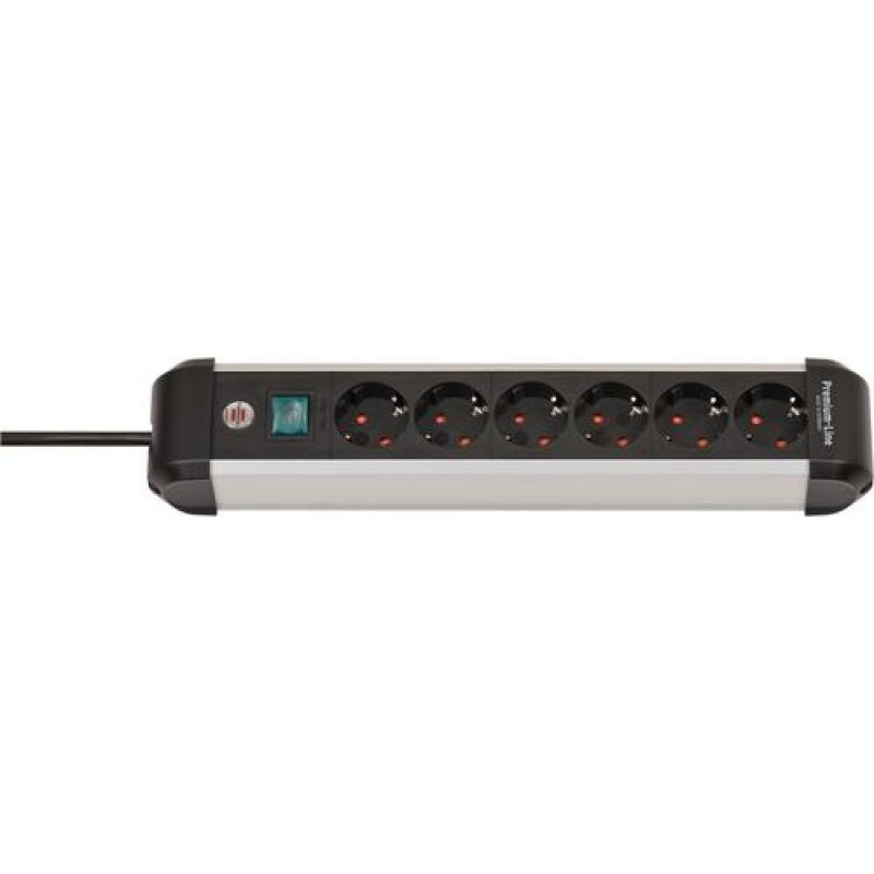 The Premium-Alu-Line extension lead with 6 outlets in a slim design serves as an optimal power supply source in the home office or at the workplace. The power strip with illuminated safety switch (two-pole) and space-saving sockets in 45° arrangement can also be mounted on the wall or even on a table leg thanks to the innovative mounting concept. The power socket outlet with increased contact protection also impresses with the following features:<br>- Shapely, timeless, stable housing made of aluminium with insensitive, matt anodised surface<br>- Extra robust stability in a slim design<br>- Safety switch illuminated, two-pole on/off switchable<br>- Cabel: 3 m H05VV-F 3G1,5Brennenstuhl 1391030600. Cable length: 3 m, Placement supported: Indoor, Power plug form factor: Angled. AC outlets quantity: 6 AC outlet(s). Width: 75 mm, Depth: 95 mm, Height: 410 mm. Number of products included: 1 pc(s)