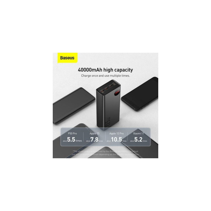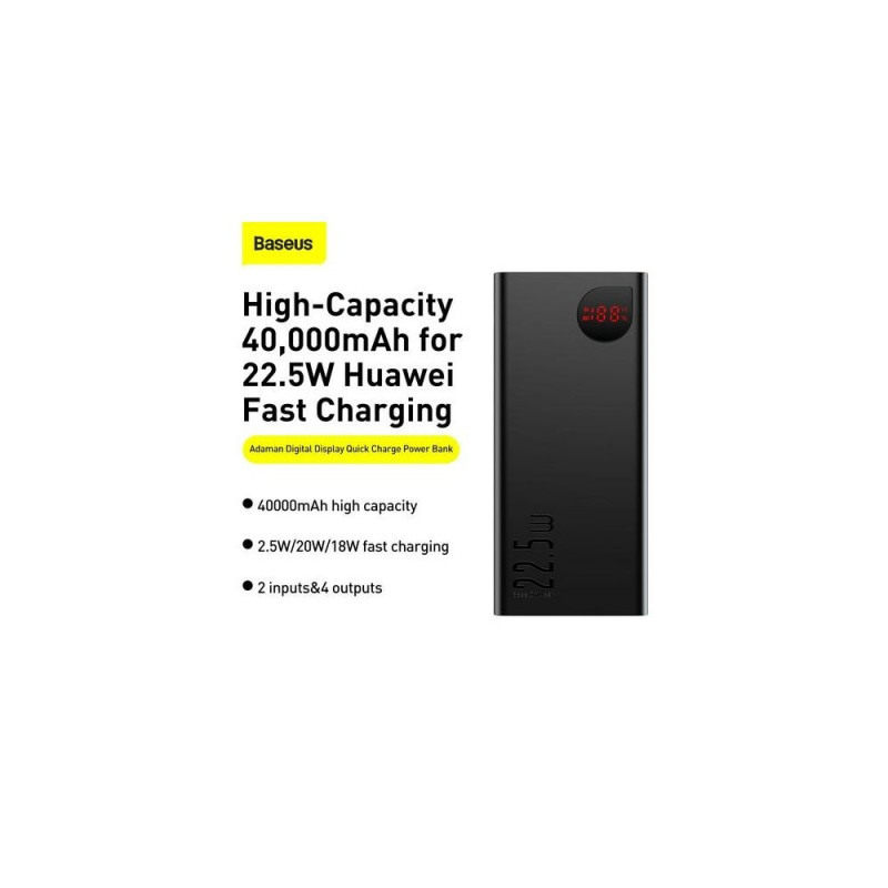 <br />Baseus ADAMAN OVERSEAS EDITION 40.000 MAH DIGITAL DISPLAY 22.5W POWERBANK SIYAH. Battery capacity: 40000 mAh, Battery technology: Lithium. Product colour: BlackOsta kohe, viimased eksemplarid laos!