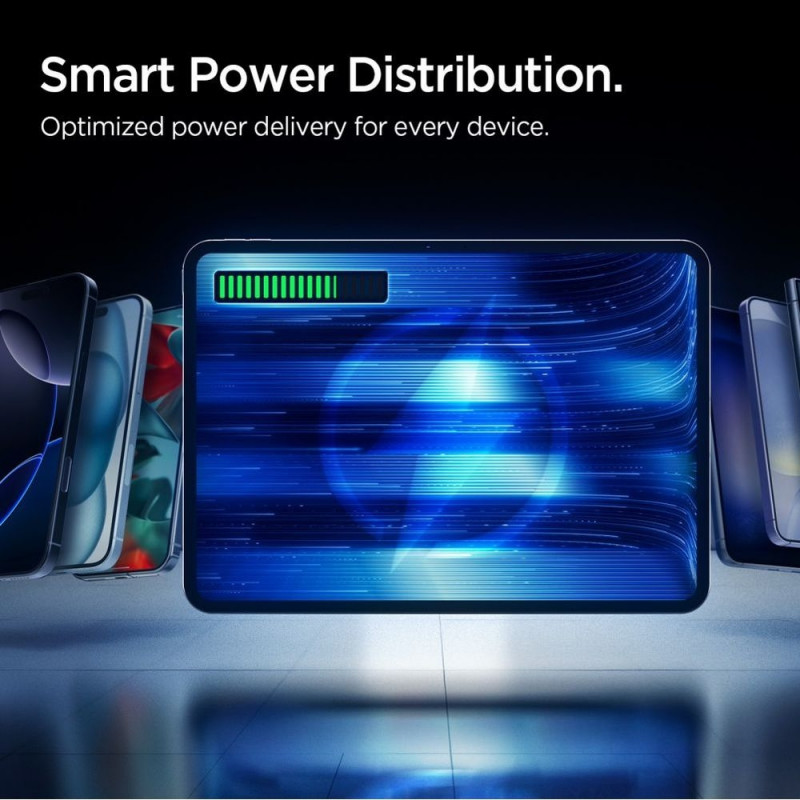 Seade kasutab täiustatud Quantum Boost tehnoloogiat, mis tuvastab automaatselt ühendatud seadme tüübi ja kohandab laadimisvõimsuse optimaalselt. Varustatud kahe pordiga—20W USB-C kahepoolse laadimisega ja 22,5W USB-A-ga—võimaldab see laadida korraga kuni kolme seadet ilma jõudlust ohverdamata.