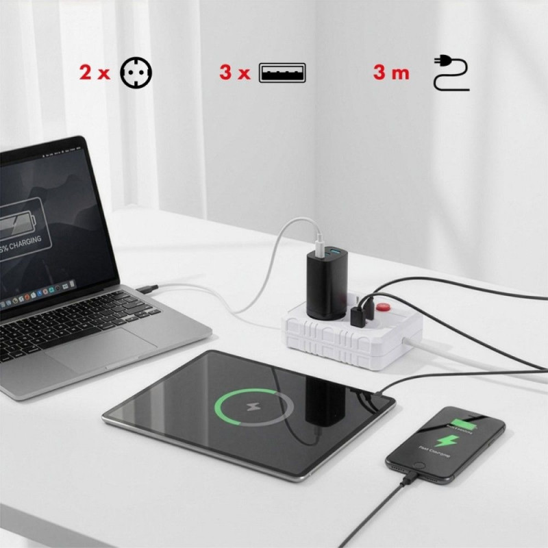 Kaasaegne pikendusjuhe kahe pistikupesa ja kolme USB-pordiga on ideaalne lahendus neile, kes vajavad väikest, kuid funktsionaalset pikendusjuhet oma kontorisse, elutuppa või magamistuppa. 2500 W võimsuse ja tugeva konstruktsiooniga tagab see olulistele seadmetele ohutu toiteallika, võttes ise vähe ruumi. See on täiuslik valik kõikjal, kus on oluline korrektsus, mugavus ja moodne disain.