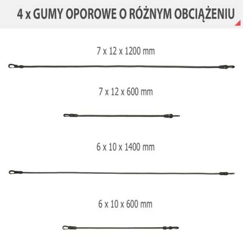 This device offers a modern training approach in the spirit of CrossFit. Each pair of cables has a different stiffness, allowing for different intensity levels of resistance exercises. Each cable has a handle, allowing for comprehensive strength training of all muscle groups.